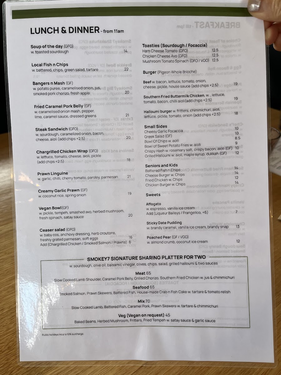 Nestled in the heart of Kingston, Tasmania, Smokey7 is a cozy cafe that beckons food lovers with its enticing menu. Known for its delectable burgers, signature options include the classic Beef Burger and the succulent Fried Buttermilk Chicken Burger, both priced at A$19.00. Customers rave about the big breakfast offerings, featuring fresh ingredients and generous portions, making it a perfect start to the day.